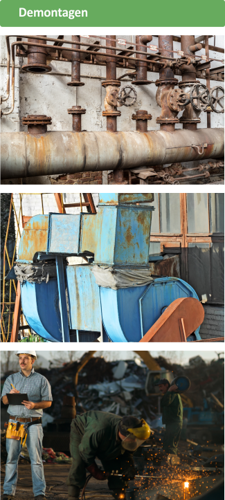 - Entfernen von Hallen- und Gebäudedächern sowie Vordächer